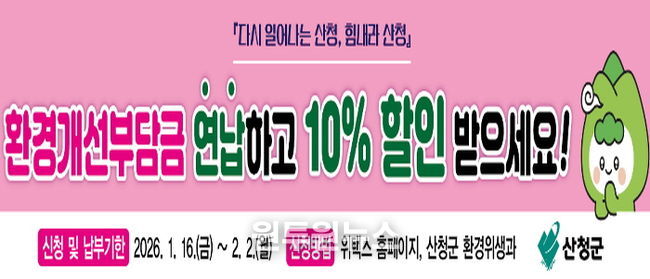 신청 및 납부는 오는 2월 2일까지 인터넷 위택스나 산청군 환경위생과로 전화 및 방문해 납부할 수 있다.