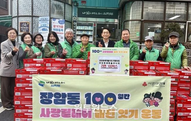 (원투원뉴스) 의정부시 장암동주민센터는 1월 15일 장암동 새마을지도자협의회·새마을부녀회가 겨울철 어려운 이웃들을 위해 라면 100상자를 전달하며 ‘100일간 사랑릴레이 배턴 잇기’에 동참했다고 밝혔다.