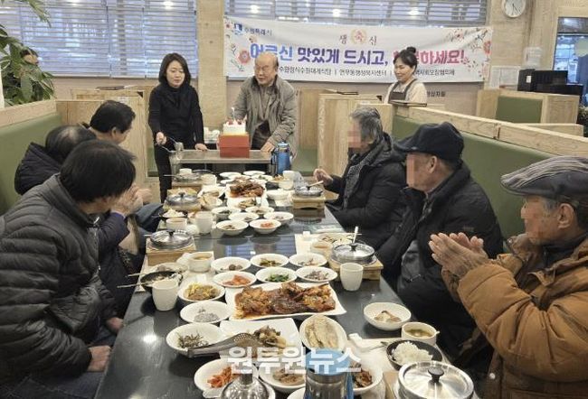 (원투원뉴스) 수원시 장안구 연무동은 지난 15일 이교수한정식과 생신을 맞은 저소득 어르신들에게 따뜻한 한 끼를 대접하고 축하의 마음을 전하는 나눔 활동을 진행했다.