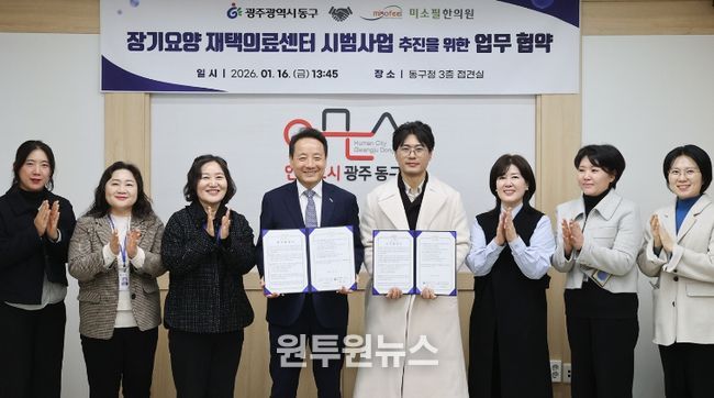 (원투원뉴스) 광주 동구는 16일 미소필한의원(원장 박태희)과 주민 건강증진 및 의료서비스 접근성 강화를 위한 ‘협업형 장기요양 재택의료센터 시범사업’ 추진 업무협약을 체결했다고 밝혔다.