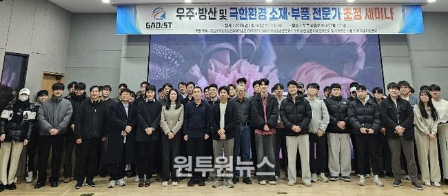(원투원뉴스) 경상국립대학교 경남우주항공방산과학기술원(GADIST) 소속 ‘우주·방산 첨단소재 연구센터’와 ‘우주환경 부품·소재 개발지원센터’는 1월 14일 우주항공산학협력관에서 ‘우주·방산 및 극한환경 소재·부품 분야 전문가 초청 세미나’를 개최했다.