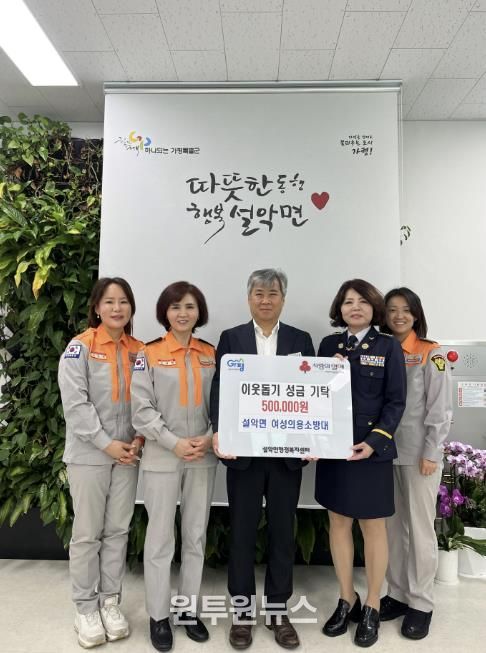 이동철 설악면장은 “의용소방대장님을 비롯한 설악면 여성의용소방대원들의 소중한 기부 실천에 진심으로 감사드린다”며 “기탁해 주신 성금은 꼭 필요한 곳에 유용하게 사용하겠다”고 했다.