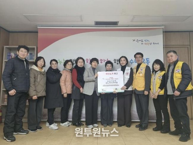 (원투원뉴스) 구리시 수택2동 행정복지센터는 지난 1월 16일 수택2동 7개 기간단체가 모금한 적십자 특별회비 145만 원을 대한적십자사에 전달하는 전달식을 개최했다고 밝혔다.