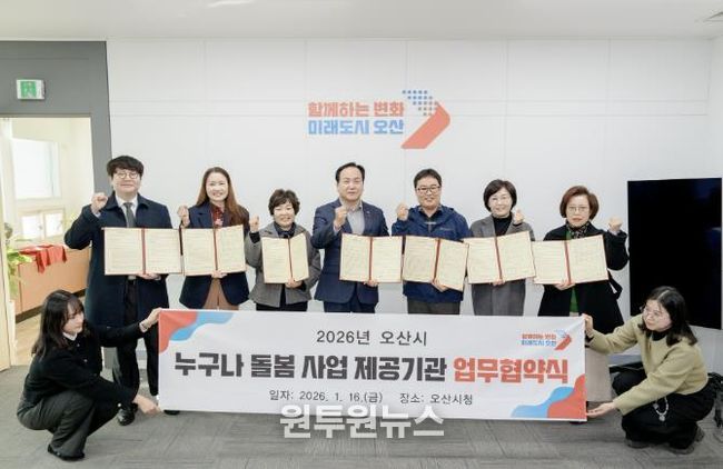 오산시 관계자는 “이번 협약은 도움이 필요한 시민에게 돌봄 서비스가 원활하게 연계될 수 있도록 민관 협력 체계를 구축하는 데 의미가 있다”며 “앞으로도 서비스 품질 관리와 운영 내실화를 통해 돌봄 사각지대 해소에 힘쓰겠다”고 밝혔다.