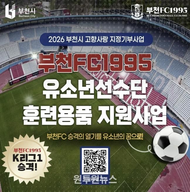 ‘부천FC1995 유소년 선수단 훈련용품 지원’은 미래의 국가대표를 꿈꾸는 유소년 선수들에게 유니폼, 축구화, 축구공 등 필수 훈련용품을 지원하는 사업이다. 시는 이번 지원을 통해 유소년 선수들의 훈련 환경을 개선하고, 지역 스포츠 저변 확대와 부천FC 팬층 형성에도 도움이 될 것으로 보고 있다.