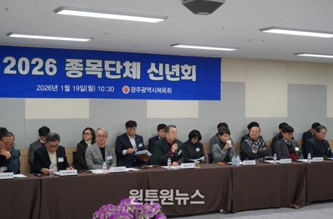 (원투원뉴스) 광주광역시체육회는 1월 19일 체육회관 2층 중회의실에서 종목단체 회장, 임직원 등이 참석한 가운데'2026 종목단체 신년회'를 개최했다.
