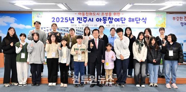 (원투원뉴스) 진주시는 19일 시청 3층 문화강좌실에서 ‘2025년 진주시 아동참여단 해단식’을 개최하고, 한 해 동안 아동참여단 아동들의 활동을 마무리했다.