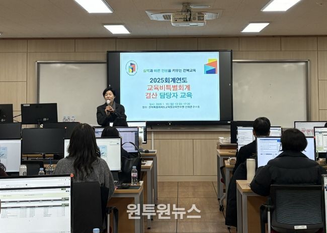 (원투원뉴스) 전북특별자치도교육청은 19일 전북교육청교육연수원에서 본청과 직속기관, 교육지원청 소속 결산업무 담당자 60여 명을 대상으로 2025회계연도 결산업무 연수를 실시했다.