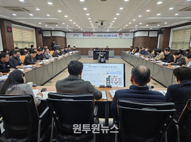 군은 지난 16일 군청 중회의실에서 ‘2026년 1월 태안국제원예치유박람회 추진상황 보고회’를 열고, 153억 원이 투입되는 41개 연계사업의 부서별 추진 현황을 촘촘히 점검하며 성공적인 개최를 위한 최종 담금질에 나섰다.