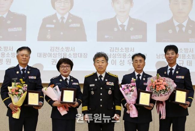 그리고 그동안 투철한 사명감과 봉사정신으로 지역 안전문화 정착에 공헌한 이미숙 전 여성연합회장, 이영원 전 어모남성의용소방대장, 권주희 전 대광여성의용소방대장, 이성우 전 대덕남성의용소방대장, 박규태 전 남면남성의용소방대장 5명에게 공로패를 수여했다.