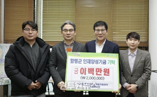 (원투원뉴스) 전남 함평군은 “지난 19일 행복함평 농어촌활성화지원센터 사회적협동조합이 함평군 인재양성기금에 200만원을 기탁했다”고 20일 밝혔다.