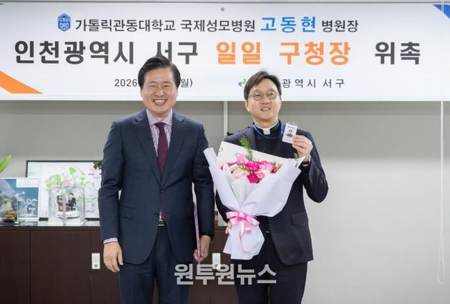 (원투원뉴스) 인천 서구가 지난 19일 가톨릭관동대학교 국제성모병원 고동현 의료원장 겸 병원장을 ‘일일 구청장’으로 위촉했다.