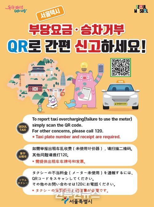 서울시는 외국인이 택시 이용 중 부당요금이나 불편을 겪었을 경우 현장에서 바로 신고할 수 있도록 택시 내부 및 주요 관광지 등에 ‘QR 택시 불편신고 시스템’ 안내 스티커·현수막·포스터를 부착하고, 서울시 공식 SNS를 통해서도 지속적으로 홍보하고 있다.