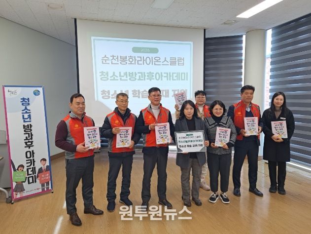 (원투원뉴스) 순천봉화라이온스클럽(회장 조동천)은 지난 19일 순천시 청소년문화의집에서 청소년방과후아카데미 초등·중등 청소년들의 학습 지원을 위해 100만 원 상당의 교재를 전달했다.