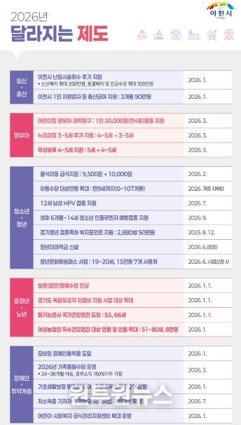 (원투원뉴스) 이천시가 2026년 새해를 맞아 시민 생활과 밀접한 달라지는 제도를 발표했다.
