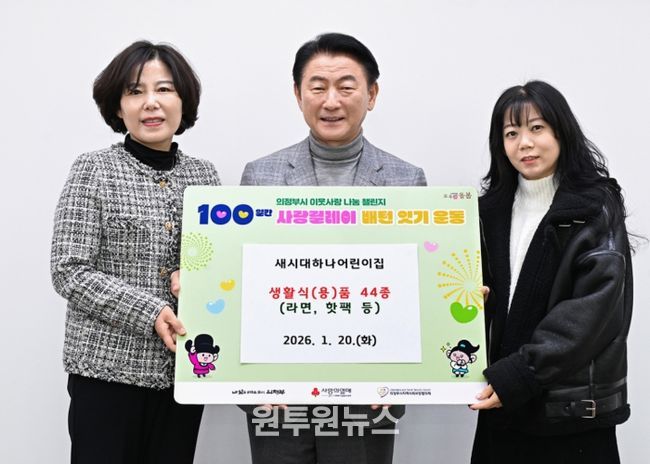 (원투원뉴스) 의정부시는 1월 20일 새시대하나어린이집이 ‘100일간 사랑릴레이 배턴 잇기’에 동참해 관내 저소득층을 위한 생활식(용)품 44종(라면, 핫팩 등)을 기부했다고 밝혔다.