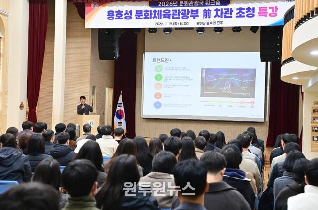 (원투원뉴스) 진주시는 지난 19일 월아산 숲속의 진주에서 문화관광국과 진주문화관광재단 소속 직원들을 대상으로 ‘2026 문화관광업무 워크숍’을 개최했다고 밝혔다.