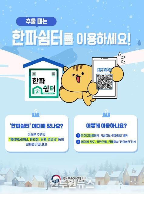 여러분 주변의 '행정복지센터, 편의점, 은행, 경로당' 등이 한파쉼터입니다!