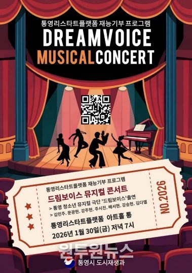 (원투원뉴스) 통영시는 오는 30일 저녁 7시 통영리스타트플랫폼 1층 아트홀 통에서 통영리스타트플랫폼 재능기부 프로그램 ‘드림보이스 뮤지컬 콘서트’를 개최한다.