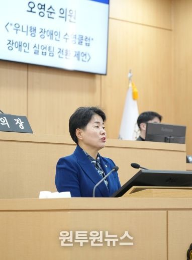 (원투원뉴스) 오영순 광주 남구의회 의원은 25일 제317회 임시회 1차 본회의에서 5분 발언을 통해 ‘우니행 장애인수영클럽’을 ‘남구청 장애인실업팀 수영단으로’ 운영할 것을 제안했다.