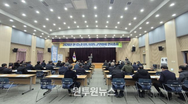 (원투원뉴스) 청도군은 1월 20일 청도군농업기술센터 대회의실에서 농촌지도자청도군연합회 2026년 새해 연시총회를 개최했다. 이번 총회에는 최종환 군회장을 비롯해 군임원, 읍‧면 대의원 등 50여 명이 참석하여, 농업 발전을 위한 다양한 현안을 논의했다.