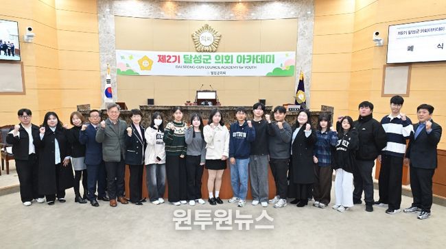 (원투원뉴스) 달성군의회는 20일 달성군의회 본회의장에서 ‘달성군의회 제2기 청소년 의회 아카데미’를 개최했다. '의회 아카데미'란 어린이·청소년을 대상으로 의정활동 전반에 대한 체험활동을 통해 지방의회 역할과 기능에 대한 이해를 높이고 대의민주주의를 경험해 보는 프로그램이다.