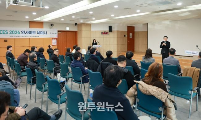 (원투원뉴스) 용인특례시는 20일 시청 비전홀에서 ‘국제전자제품박람회(CES) 2026 인사이트 세미나’를 열고, 국제 기술 동향과 CES 참가 성과를 공유했다.