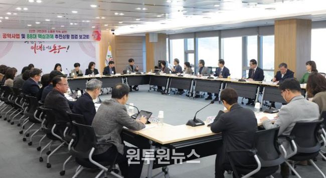이날 보고회에는 박희조 동구청장을 비롯해 국·소장과 부서장 등 33명이 참석했으며, 민선 8기 공약사업과 핵심과제 전반의 추진 현황을 점검하고 남은 과제의 이행을 위한 추진 방향을 공유했다.