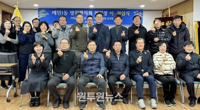 김은정 매탄1동장은 “길일엽 위원장님은‘어디선가 누군가를 지켜주는 사람’으로 늘 현장을 먼저 찾으며 매탄1동의 안전을 책임져 오신 분”이라며 깊은 감사의 뜻을 전했다. 이어 “김석문 신임 위원장님이 그 헌신의 바통을 이어받아 방위협의회를 더욱 든든하게 이끌어 주실 것으로 기대한다”고 전했다.