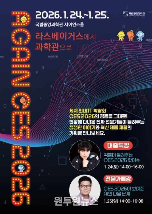 행사 첫날인 1월 24일에는 과학교육 분야에서 높은 인기를 얻은 ‘긱블(수드래곤)’이 강연자로 나서 2026 미국 가전 전시회(CES 2026) 현장을 직접 경험한 과학관 학예 연구사(큐레이터)와 함께 생생한 현장 이야기와 기술적 최신 쟁점(핫이슈)을 전할 예정이다. 1월 25일에는 10년간 미국 가전 전시회(CES) 현장을 취재해 온 현장 기반 분석 전문가인 엄메이징HRD 이선 작가가 ‘2026 미국 가전 전시회(CES 2026)가 보여준 인공지능의 다음 단계’라는 주제로, 2026 미국 가전 전시회(CES 2026) 현장에서 확인한 변화를 전하고 좀 더 전문적인 통찰력을 제공하는 강연을 진행한다.