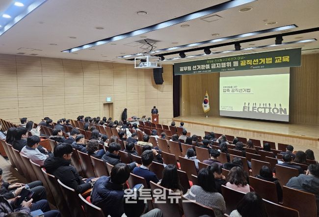 이번 교육은 오는 6월 3일 실시되는 제9회 전국동시지방선거를 앞두고 소속 직원들을 대상으로 공무원의 정치적 중립 의무를 준수하고 업무 추진 과정에서 발생할 수 있는 공직선거법 위반 행위를 사전에 예방하기 위한 목적으로 실시됐다.