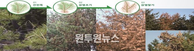 감염 의심목은 1차(서울시 동부공원여가센터), 2차(국립산림과학원) 진단 결과에 따라 소나무재선충병으로 최종 판정됐다.