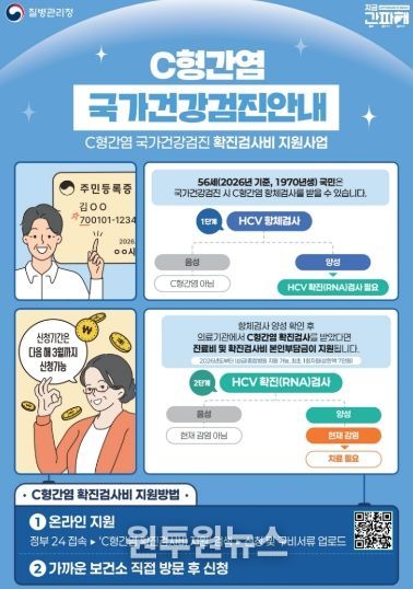 지난해 시작한 ‘C형간염 확진검사비 지원사업’은 기존 병·의원급 의료기관의 검사 대상자로 한정됐으나, 올해부터는 종합병원과 상급종합병원에서 확진 검사를 받은 대상자까지 확대된다.