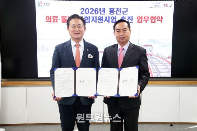 홍천군은 2026년 1월 22일 군청 접견실에서 사회복지법인 ‘중앙원’과 의료 돌봄 통합 지원사업 협력 기관 협약식을 열고 업무협약을 체결했다.