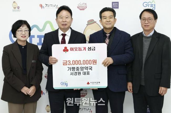(원투원뉴스) 가평중앙약국 서경원 대표는 21일 이웃돕기 성금 300만원을 가평군에 기탁하며 지역사회 나눔 실천에 동참했다.
