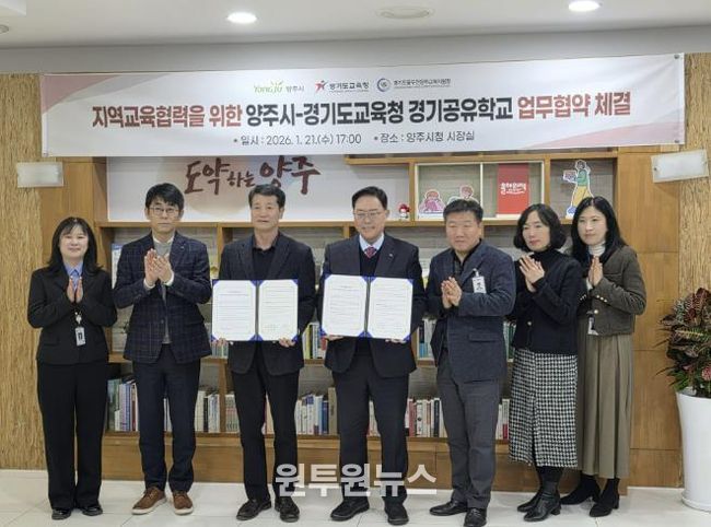 (원투원뉴스) 동두천양주교육지원청과 양주시청은 1월 21일, '지역교육협력을 위한 양주시-경기도교육청 경기공유학교 업무 협약'을 체결했다.