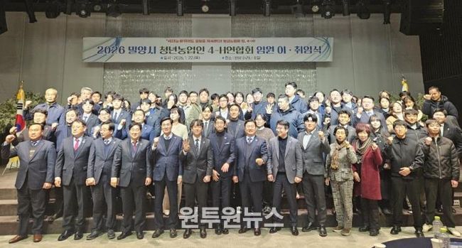 (원투원뉴스) 경남 밀양시는 지난 22일 호텔 아리나에서 ‘2026 밀양시 청년농업인 4-H연합회 임원 이·취임식’을 가졌다.