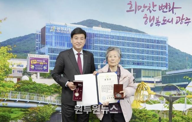 (원투원뉴스) 광주시는 지난 22일 6·25전쟁에 참전해 공을 세운 故 최갑용 소위의 유가족에게 화랑무공훈장과 증서를 전달했다.