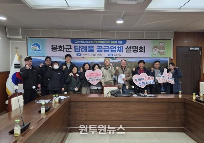 (원투원뉴스) 봉화군은 1월 23일 사회적기업 ㈜공감만세(대표 고두환)가 운영하는 고향사랑기부제 민간플랫폼 ‘위기브(wegive)’와 고향사랑기부금 모금 계약을 체결하고, 답례품 공급업체 19개소를 대상으로 설명회를 개최했다.