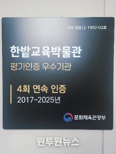 (원투원뉴스) 한밭교육박물관은 문화체육관광부가 시행하는 공립박물관 평가인증제에서 2025년 인증을 획득하며, 2017년부터 4회 연속 인증을 기록한 성과를 바탕으로 ‘평가인증 우수기관’에 선정됐다고 23일 밝혔다.