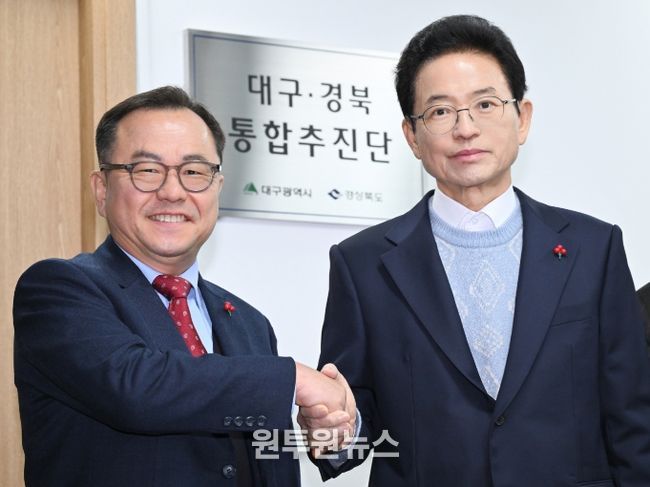 (원투원뉴스) 경상북도는 26일 도청에서 대구광역시와 함께 ‘대구경북통합추진단(T/F)’ 현판식을 갖고 대구경북 행정통합을 위한 실무체계를 즉각 가동한다고 밝혔다.
