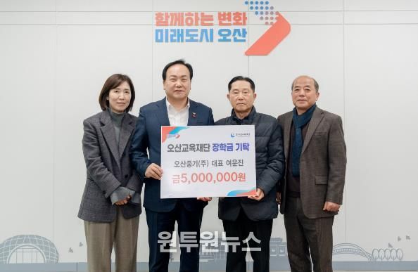 이권재 오산시장은 “지역사회를 위해 꾸준히 나눔을 실천해 주고 계신 여운진 대표님께 진심으로 감사드린다”며 “기탁해 주신 장학금은 오산 학생들이 꿈과 재능을 마음껏 펼칠 수 있도록 소중히 활용하겠다”고 밝혔다.