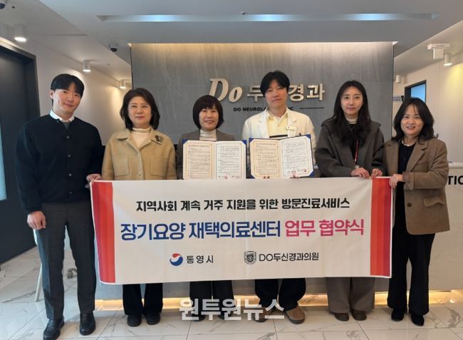 (원투원뉴스) 통영시는 거동이 불편해 의료기관 이용이 어려운 장기요양 수급자가 요양시설에 입소하지 않고 기존에 거주하던 주거지에서 의료서비스를 지속적으로 제공받을 수 있도록 지원하는 ‘장기요양 재택의료센터 시범사업’의 원활한 추진을 위해 Do두신경과의원과 업무협약을 체결했다고 27일 밝혔다.