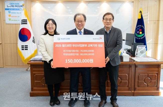 (원투원뉴스) 부산광역시교육청은 27일 오후 교육청에서 월드비전 부산사업본부(본부장 이현)로부터 1억 5천만원 상당의 교육기부금을 전달받았다.