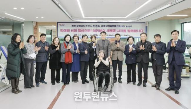 (원투원뉴스) 군포시는 지난 26일 장애인과 어르신들의 재활을 돕고 삶의 질을 높이기 위해재활운동치료센터를 군포시보건소 3층으로 확장·이전하고 개소식을 개최했다.