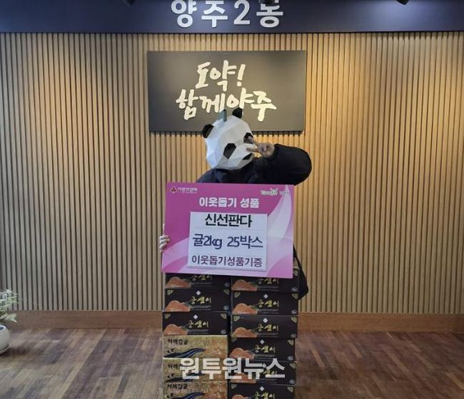 (원투원뉴스) 양주시 양주2동 행정복지센터는 지난 27일, 신선판다에서 새해를 맞아 어려운 이웃들에게 전달해달라며 귤 25박스를 기부했다고 밝혔다.