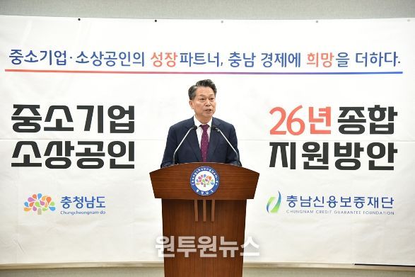 (원투원뉴스) 충남신용보증재단은 27일 오전 11시, 도청 프레스센터에서 언론브리핑을 열고 '2026년 중소기업·소상공인 종합지원 방안'을 발표했다.