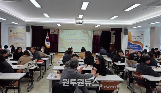 (원투원뉴스) 대구남부교육지원청은 1월 29일 오후 2시 남부교육지원청 대회의실에서 초등학교 교장 및 공립유치원 원장 70여 명을 대상으로 ‘신뢰와 협력을 강화하는 학교 경영’을 주제로 연수를 실시한다고 밝혔다.