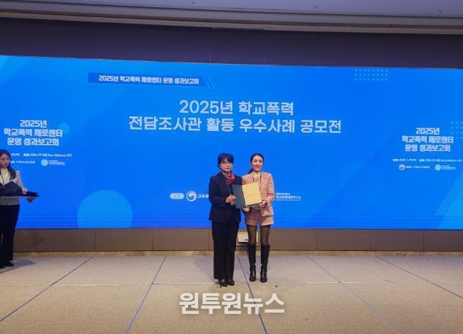 (원투원뉴스) 울산 강남교육지원청 소속 김여진 학교폭력 전담 조사관이 전국 교육지원청을 대상으로 열린 ‘2025년 학교폭력 전담 조사관 활동 우수사례 공모전’에서 우수상을 받았다.