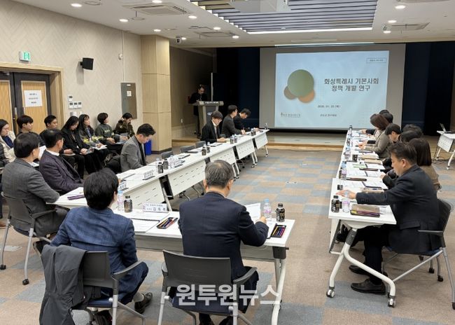 (원투원뉴스) 화성특례시는 1월 29일 오전 10시 시청 5층 대회의실에서 조승문 제2부시장을 비롯한 시의원과 관계 부서장 등이 참석한 가운데 '화성형 기본사회 정책개발 연구용역 최종보고회'를 개최했다.